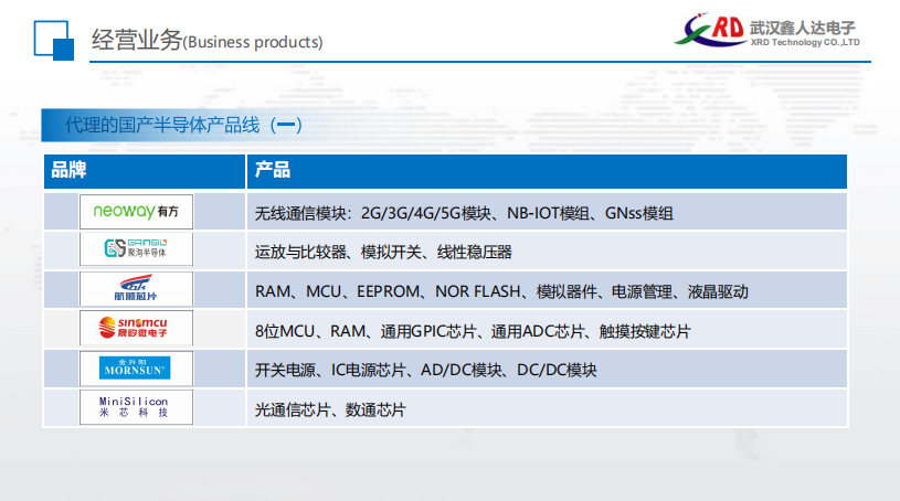 公司代理經銷國內外眾多半導體廠商IC,目前,又新增代理了眾多國產IC,為增強本土集成電路行業出一份力。