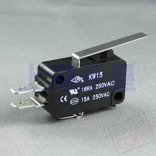 類型 開關 型號 KW15 購買 簡介 微動開關是一種施壓促動的快速開關,又叫靈敏開關。其工作原理是外機械力通過傳動元件(按銷、按鈕、杠桿、滾輪等)將力作用于動作簧片上,并將能量積聚到臨界點后,產生瞬時動作,使動作簧片末端的動觸點與定觸點快速接通或斷開。當傳動元件上的作用力移去后,動作簧片產生反向動作力,當傳動元件反向行程達到簧片的動作臨界點后,瞬時完成反向動作。微動開關的觸點間距小、動作行程短、按動力小、通斷迅速。其動觸點的動作速度與傳動元件動作速度無關。 微動開關以按銷式為基本型,可派生按鈕短行程式、按鈕大行程式、按鈕特大行程式、滾輪按鈕式、簧片滾輪式、杠桿滾輪式、短動臂式、長動臂式等等。 微動開關在電子設備及其他設備中用于需