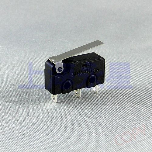 類型 開關 型號 KW11 購買 簡介 微動開關是一種施壓促動的快速開關,又叫靈敏開關。其工作原理是外機械力通過傳動元件(按銷、按鈕、杠桿、滾輪等)將力作用于動作簧片上,并將能量積聚到臨界點后,產生瞬時動作,使動作簧片末端的動觸點與定觸點快速接通或斷開。當傳動元件上的作用力移去后,動作簧片產生反向動作力,當傳動元件反向行程達到簧片的動作臨界點后,瞬時完成反向動作。微動開關的觸點間距小、動作行程短、按動力小、通斷迅速。其動觸點的動作速度與傳動元件動作速度無關。 微動開關以按銷式為基本型,可派生按鈕短行程式、按鈕大行程式、按鈕特大行程式、滾輪按鈕式、簧片滾輪式、杠桿滾輪式、短動臂式、長動臂式等等。 微動開關在電子設備及其他設備中用于需